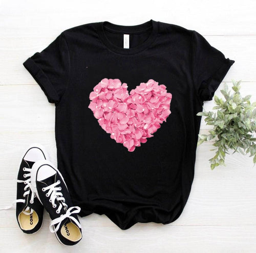 Pink Heart Flower Print Women Tshirt Cotton Casual